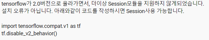 2.0으로 업그레이드된 TensorFlow는 더이상 Session 모듈을 지원하지 않는다!
