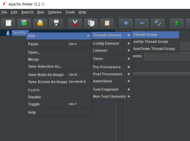 좌측 상단 TestPlan 우클릭 > Add > Threads (Users) > Thread Group