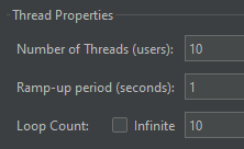 - Number of Threads (users) : 몇 명의 동시 사용자를 설정할 것인지